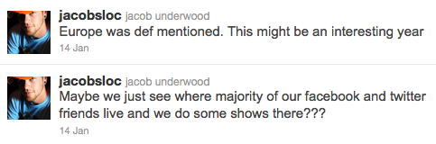 Below you will find all the tweets from the band members (as far as I know, Dan does not have a twitter and I don’t know if he has mentioned anything elsewhere) I think in the order they were tweeted, give or take. There are no dates yet, it looks like they are looking for places where they have a lot of fans before deciding where they will be going. With any luck they will end up playing somewhere relatively close to me so I can go and check it out!